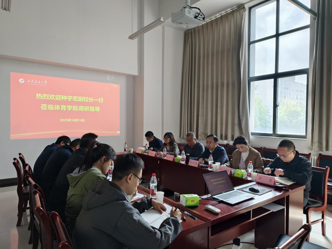 种宇宏在认真听取汇报后,对体育学院教育教学工作给予了肯定。同时结合学校、学院实际情况,对下一步工作提出了明确要求和具体指导。他强调,体育是高校育人体系的重要环节,要强化公共体育教学,培养学生终身体育意识。他要求各部门与体育学院协同联动,以问题为导向推进学科建设、人才引育等工作,切实推动学院高质量发展。种宇宏向学院提出四点要求:一是以党建工作为引领,常抓不懈。要以党建工作为龙头,充分发挥党建工作在“育人”成效上的引领作用,规范组织生活,提升主题党日活动的质量,以党建促进学院学科建设、师资队伍、人才培养质量提升;二是狠抓队伍建设,要有高标准。要聚焦主责主业,即体育教学、科学研究和人才培养。需要建设一支高水平的师资队伍,才能不断提升教学质量与科研能力;学生工作要选好学生干部,以先进带后进。高标准组织好教学相关及团学活动;三是注重系统谋划,优化工作方法。要加强调查研究,深入了解学生和社会需求,通过优化顶层设计,不断提高工作方法的科学性、系统性和有效性。提高自我要求,以教育家精神积极主动投入工作;四是坚持以生为本,科学有效提升管理水平。要加强总结、统计、研判工作,做到解决问题举一反三,更科学、更有效地提升管理水平。要关注学生的个体差异,特别是对于在学习、训练或生活中遇到困难的学生,要给予更多的关心和帮助,将人文关怀融入严格管理。